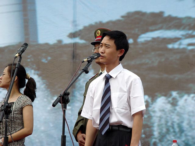 开学典礼暨军训阅兵式由校长办公室主任姚利民主持。
