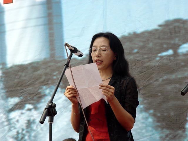 教师代表贾晓明教授发言,希望同学们刻苦学习、戒骄戒躁。