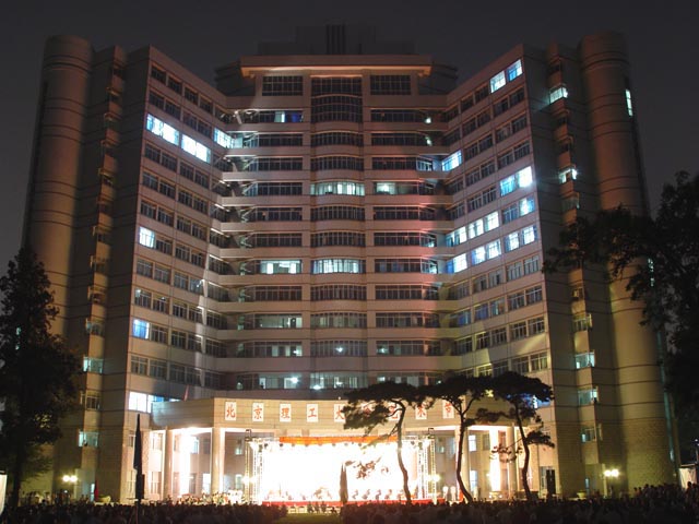 夜色中的中心教学楼被恢宏的音乐所环绕。