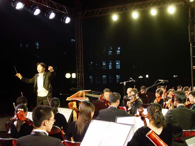 9月11日晚,ob真人竞猜文化艺术节交响乐专场音乐会在中心教学楼前隆重举行。