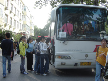 上午9:18分,近200名05级新生和40余名05级研究生党员在组织员李曼绮老师、办公室副主任刘力老师、分团委书记周潇潇老师、副书记周明宇老师和武靖宇老师的带领下准时从学校启程前往位于丰台区宛平城里的抗日战争纪念馆。10点钟到达了宛平城,同学们在带队老师的组织下,秩序井然的列队前往纪念馆。