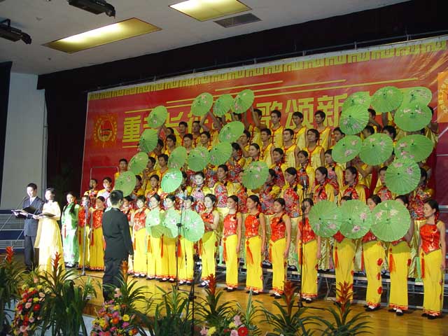 一号参赛者是人文社会科学学院,演唱的曲目是《告别》、《在希望的田野上》,人文学院的参赛者别出心裁,当他们用小伞摆出“一二·九”的造型时,赢得了满堂彩,大家纷纷对这个创意赞不绝口;