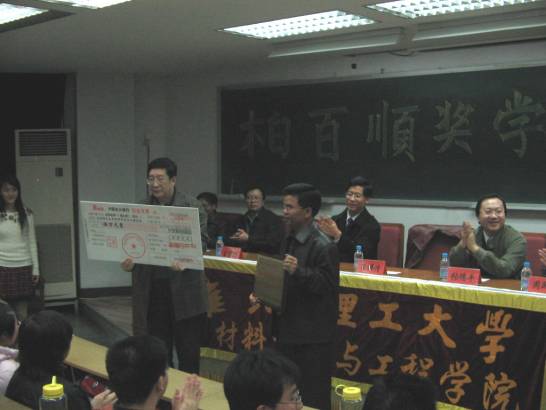 柏百顺奖学金是ob真人竞猜材料科学与工程学院建院两年来,由社会捐助而成的第一项奖学金。奖学金由东莞市柏百顺石油化工有限公司从2004年起开始设立,年奖励额度达5万元。