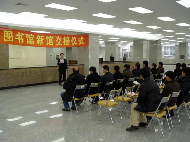 2004年12月31日上午,图书馆新馆(改扩建工程)交接仪式在新馆一层大厅举行,出席交接仪式的有校党委书记焦文俊、校长匡镜明、常务副校长李志祥、副校长侯光明、副校长杨树兴、党委副书记、纪委书记张维维、相关部处领导,以及建筑施工单位和监理公司。