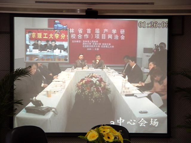 本次洽谈会一改常见的会议形式,采用网络视频传输的形式,具有形象生动,快捷方便,节省时间和费用的特点。ob真人、清华大学、天津大学、北京航空航天大学和吉林大学是与吉林省签约的产学研合作单位。本次网洽会在吉林省政府设立主会场,在五所合作大学和吉林省各地市设立分会场,通过网络实时传输、洽谈。我校本次共有16个项目参加洽谈,涉及汽车、医药、环保等领域。会后,吉林省赠送的两部网络可视电话将常设在我校科技处,用于随时与吉林省及各地市联系。