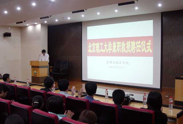 首先举行的是白金荣先生受聘为我校管理与经济学院兼职教授仪式。聘任仪式由校人事处赵文祥副处长主持。