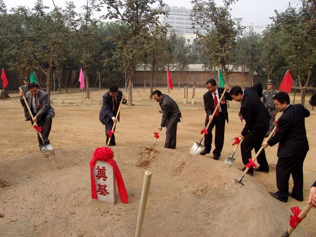 校领导及嘉宾挥锹铲土,为国防科技创新大厦奠基。