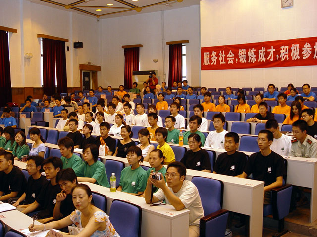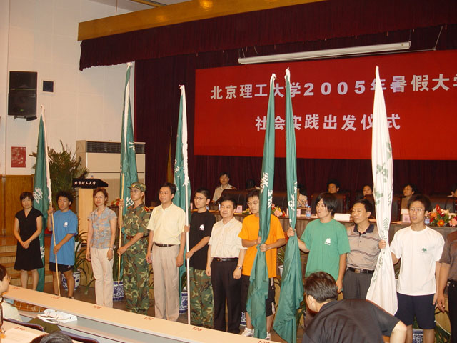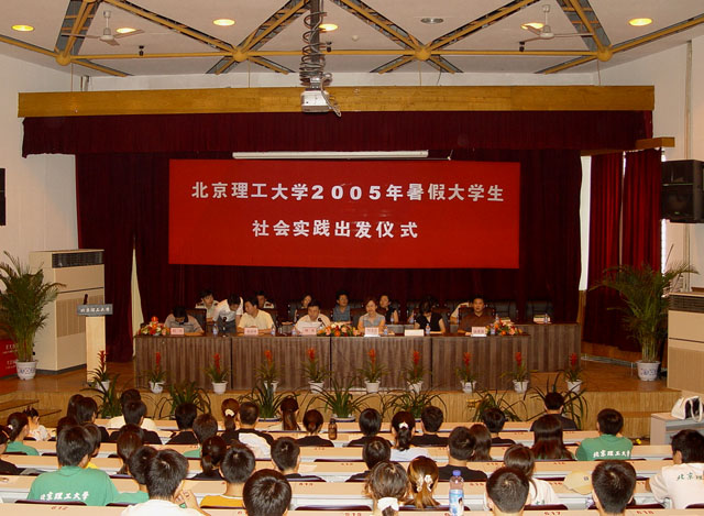 2005年7月12日,ob真人竞猜暑期社会实践团出发仪式在7号楼报告厅隆重举行。