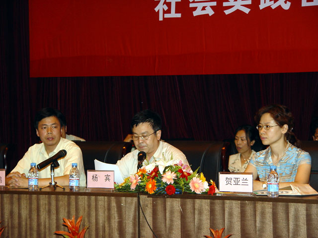 最后,学校党委副书记、副校长杨宾做了总结发言,并就“走访百名校友,寻找人生坐标”活动作了重要指示。今年是我校65周年校庆,按照校党委提出的“繁荣学术、凝聚校友、扩大影响、推动发展”的指导思想,校团委在2005年暑假社会实践团中为共同回忆65年来学校走过的风雨历程,特别在暑假开设了此活动,希望通过此项活动来了解校史,借鉴校友经历,助己成才,展现学校峥嵘岁月,培养学生爱校、护校、建校、荣校的思想。