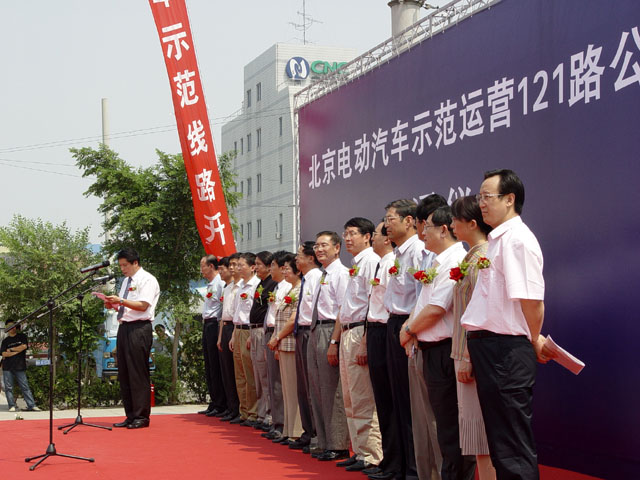 为此,科技部与北京市相关部门隆重举办了北京电动汽车示范运行121路公交线开通仪式。