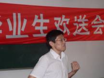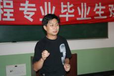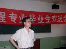 之后,首届工业工程专业的第一任班主任阎艳老师走上了讲台。阎老师四年来为我们22名同学倾注了太多的爱心,在我们有困难的时候帮我们化解,在我们受挫折的时候把我们扶起,在我们成功的时候为我们自豪,她因此赢得了我们所有人的尊敬和爱戴。阎老师中肯地为我们提出了两个建议。其一,希望我们在今后能够负起责任,做有责任心的人;其二,希望我们能不管以什么形式,都要为师弟师妹们留下一些有意义东西。接下来走上前台的是我们的第二任班主任周世圆老师。周老师是大二的时候才接替阎老师的,她和我们更像是朋友的关系,周老师同样为我们能够取得圆满的毕业而感到高兴。