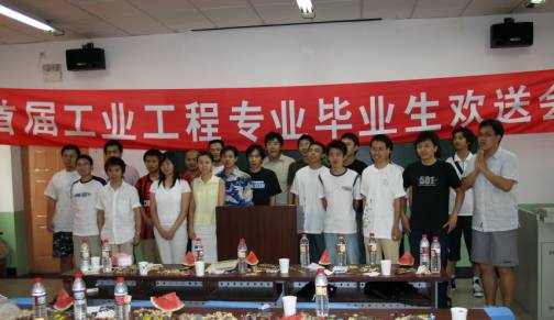 这次欢送会有着特别的意义。我校的工业工程专业是2000年被教育部批准开办的新专业,于2001年正式招收本科学生,来自全国各地的22名同学组成了这一个全新的班级7220011。四年来,在老师和同学的共同努力下,该专业取得了优异的成绩:首届毕业生全部取得学士学位,达到了毕业率100%,就业率100%,班级获得多次各类集体和个人奖励。