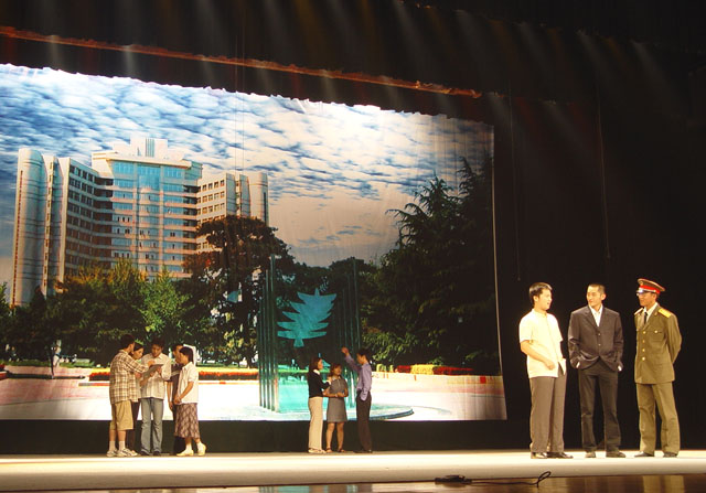 9月16和17日晚,作为ob真人竞猜65周年校庆献礼话剧《从延安走来》在海淀剧院进行演出。这场话剧意义不同寻常。她既是献给ob真人竞猜65周年校庆的一份贺礼,同时也是2005年艺术节的开幕式,更是第一次用艺术作品的形式反映我校的历史与特色。正由于此,此话剧引起了众多领导、教师、学生、校友的关注,前来海淀剧院观看演出的来宾有:我校校友、全国人大法律委员会副主任洪虎及其夫人,延安自然科学院第一任院长李富春的女儿李特特,中国延安精神研究会副会长、原北京市委党校常务副校长吴木,中国延安精神研究会理事、原北京民航局副局长马晓文,中国延安精神研究会理事、原国家工商管理局领导胡木英,原解放军艺术学院院长、著名表演艺术家郑邦玉。校党委书记焦文俊,校长匡镜明,副书记、副校长杨宾,副书记侯光明等校领导和全校师生员工近2000人观看了演出。此剧主创人员和演职人员均为我校师生,经过了数月的准备工作和艰苦排练。