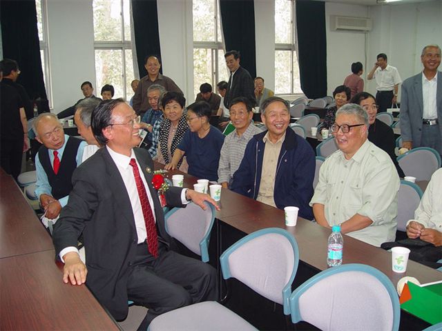 9月25日中午,匡镜明校长在四号楼与老校友们欢聚一堂,共庆母校65周年华诞。