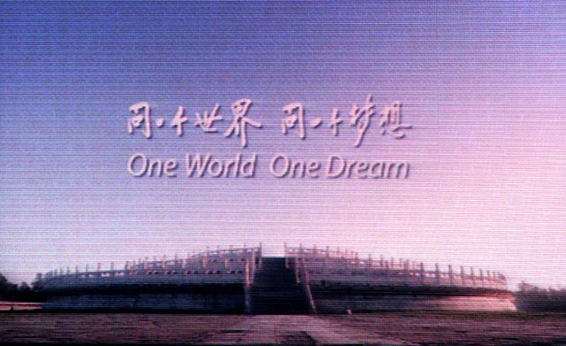 20时15分,在全场来宾的热切期盼中,李长春宣布北京2008年奥运会主题口号:“同一个世界,同一个梦想”。话音刚落,全场掌声雷动,覆盖在主题口号上的朵朵向日葵缓缓升空,“同一个世界,同一个梦想”(One world,One dream)呈现在世人眼前。