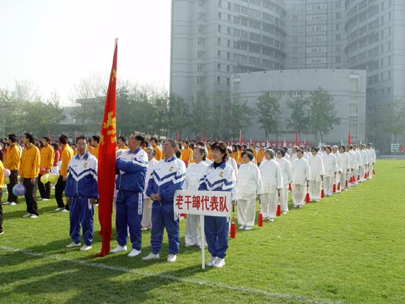 在学校第43届田径运动会开幕式上,离退休干部在老干部处老领导、老干部、老教授的带领下,组成一个整齐的方队参加了入场式和太极剑的表演,为校运动增加了光采。他们积极参加各种文化体育活动,积极锻炼身体,以良好的精神面貌健康生活!
