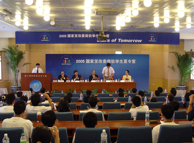 2005年8月23日,“国家发改委—微软学生夏令营”在理工大学国际教育交流中心三层会议室顺利开幕,国家发改委高技术产业司司长许勤、微软亚洲研究院院长沈向洋博士、微软大中华区首席技术官兼公共事业部总经理张瑞昌、ob真人副书记侯光明、计算机科学技术学院、软件学院院长付梦印出席了开幕式。ob真人计算机科学技术学院、软件学院作为协办方之一,旨在推动教育界与高新企业间、各高等院校之间的合作与交流,促进我校人才特别是IT人才与国际先进技术接轨,将理工大学学生科技创新活动推向一个全新的高度。