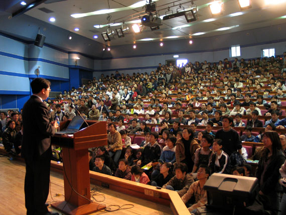 4月21日下午,微软公司全球副总裁李开复博士作客ob真人,应邀在中心楼一层学术报告厅为理工大学的师生作了一场精彩的学术报告,来自我校的近千名师生参加了报告会。出席报告会的有杨树兴校长,范瀛处长,信息科学技术学院院长贾云德教授。报告厅在提前一个小时就已经座无虚席,临时在中心楼317设置了分会场。