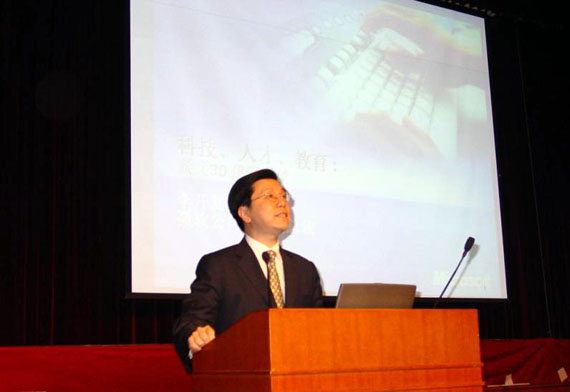 李开复博士报告的题目为:科技、教育、人才:旅美30载经验谈。会上李开复博士以自己多年的旅美经历与学生们探讨学习、成长、做人。报告结束后,李开复博士回答了师生们的提问,现场气氛十分热烈。