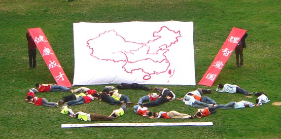 “五一黄金周”将至,奥运志愿服务活动正在全面展开。在大学生志愿服务大旗指引下,该支部的同学和理学院学生会干部一道精心制作了一张中国地图,绘制了我们的长江、黄河和宝岛台湾,并用自己的身体拼成了奥运五环的形状,他们希望通过肢体语言表达对“2008奥运”的热切期盼,用真情祝福祖国的早日统一,用当代大学生的赤诚和无限创意抒发“传承五四爱国志,投身青春奥运行”的心愿。