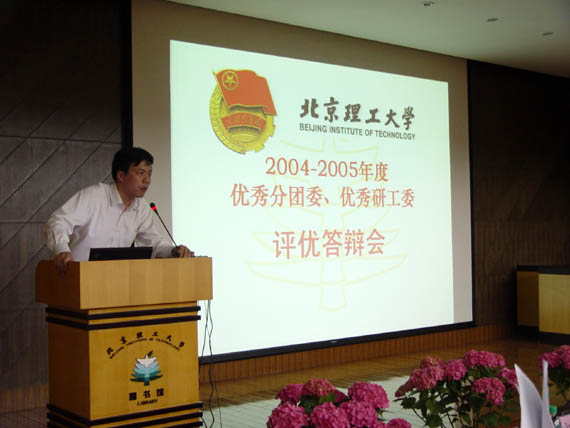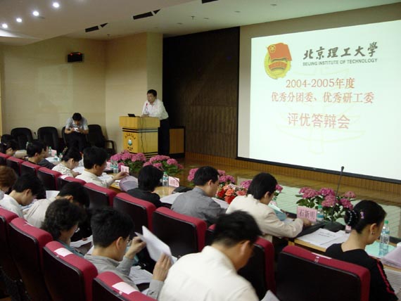 今年的评优工作在往年的基础上又增加了“团员之星”、“五四科技奉献奖”两个项目的评选。4月13日与4月20日分别是“十佳团员”、“十佳团支部”的风采展示与现场答辩,最精彩的是4月28日下午2:00在我校新团书馆报告厅举行的“2004—2005年度优秀分团委与优秀研工委的答辩”。