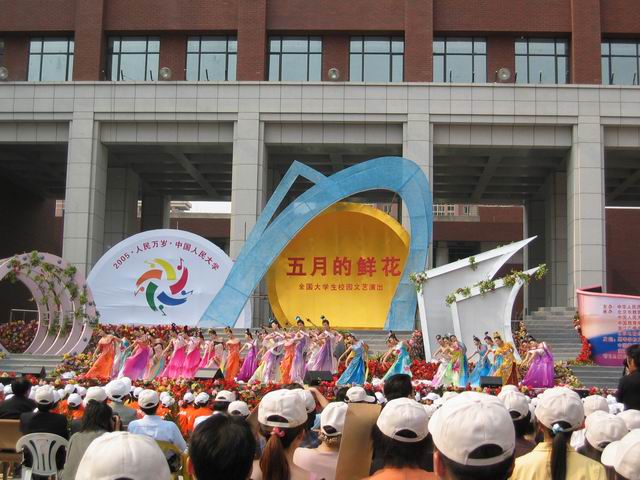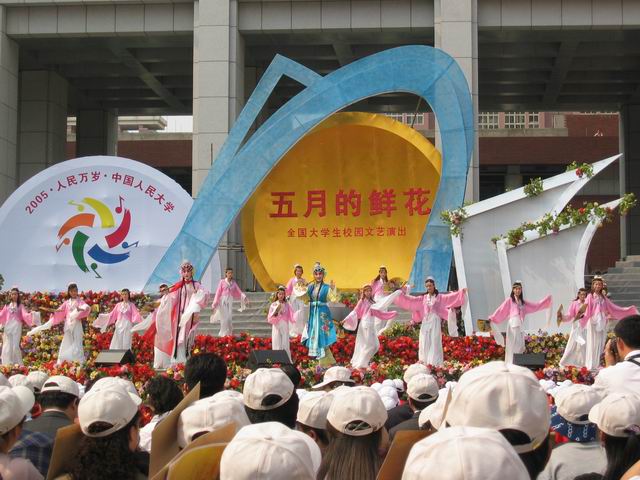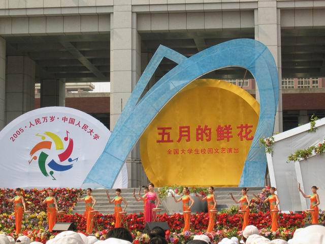 2005年“五月的鲜花”——全国大学生“人民万岁”大型校园文艺演出直播活动,经过一个多月的精心筹备,于5月15日下午2:30在人民大学明德广场绚烂绽放。