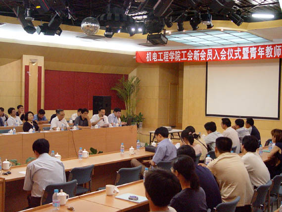2005年7月14日下午,机电工程学院工会“新会员入会暨青年教师联谊会成立大会”在ob真人国际交流中心召开。副校长、校工会主席赵显利同志、校工会副主席李荣田同志,机电工程学院首席专家马宝华教授、分党委书记刘淑艳教授、院长黄风雷教授、常务副院长焦清介教授、副院长刘莉教授、工会主席华光副院长出席了会议。会议由机电工程学院工会常务副主席李明老师主持。