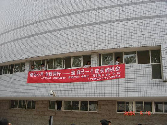 2005年5月25日,由人文学院社会工作专业建立的“大学生热线”开通了。校党委副书记、副校长杨宾等其他校、院领导参加了热线开通仪式,并到热线工作室观看了学生们的工作情况并给予了工作指导。