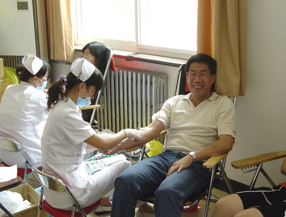 献血任务随着在校学生的逐年增加而加重,每年的献血工作犹如一场大的战役。今年能够再次顺利完成任务,主要是校党、政领导高度重视,成立了以党委副书记、副校长杨宾,副校长候光明为组长,校办副主任杨晖,校医院副院长潘晓平,团委书记张启鸿,后勤办副主任丁志坤为副组长的献血领导小组,各院、部、处也成立了相应的献血领导小组,统一负责献血工作。今年我校献血时,正赶上北京市从下达计划指标向团体无偿(即献血车进校园)模式的过渡,这给我们的工作带来很大困难,为确保任务完成,校领导亲自主持召开献血领导小组及各院、部、处负责人会议,布置献血工作,协调各院的时间安排,强调从关心学生,以人为本的高度出发,依靠组织力量,舆论宣传,进行耐心细致的工作,及时解决矛盾,创造良好的无偿献血氛围。