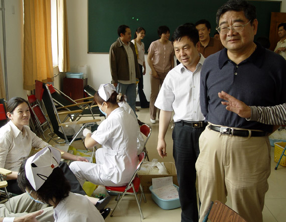 献血期间,校党委书记焦文俊,校长匡镜明、副书记副校长杨宾、副校长侯光明,孙逢春、杨树兴等校领导到现场看望参加献血的教工、学生和工作人员,给大家极大的鼓舞。副校长侯光明几乎每天都到现场,掌握献血情况,及时解决问题。校医院副院长潘晓平一直坚持在现场,组织协调献血工作中出现的情况。