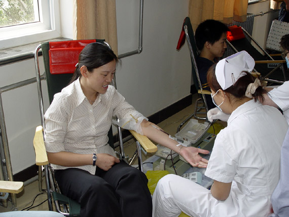 今年,我校献血工作自5月23日始至5月29日结束,为时7日,北京市献血办为我校下达的任务数是2427人,我校实际献血2602人,其中教工46人,学生2556人,超出参照指标175人,全部为无偿献血。