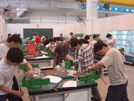 工程训练中心始建于1999年世界银行贷款"高等教育发展项目",中心现有面积万余平方米,各类实验设备、仪器及装备近千余台套件(除有传统的机械加工、成型加工装备等外,还有先进制造技术的装备,如数控车、数控铣、数控线切割、电火花成型以及生产准备、物流系统、人因工程等实验装备),总固定资产千万余元。中心除了完成我校本科学生的工程训练实践教学任务外,还发挥示范基地辐射作用,面向地方、面向社会,服务于国防科技工业,实行开放性管理。在完成"学历教育"的同时,积极组织和参与实施"国家职业资格证书制度"的培训和考核工作,现有 10多人获得“国家职业技能鉴定” 高级考评员和考评员证书。在每次实操考试时,精心组织、精心准备、严格考核纪律和安全保障。