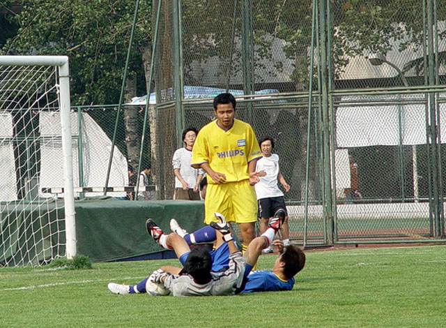 第五届飞利浦大学生足球赛的三轮小组赛6月7日战罢,在A组的比赛中,ob真人在最后一场比赛中3:0战胜广东工业大学,以不败的战绩挺进八强,尽显王者的霸气。 ob真人两战过后在A组中暂列第一,已经提前出线,所以在今天的比赛中,ob真人并没有派遣全部主力阵容,而是以替补阵容迎战对手,开场之后的广工就抢先组织进攻,两战仅积一分的他们急需一场胜利。 虽然派出的并不是主力阵容,但ob真人的实力在本场比赛中却得到了充分的体现,很快他们就稳住了阵形,比赛刚刚进行到第13分钟时,他们就利用广工防守中的失误打进一球,1:0领先。之后的比赛节奏就完全进入了ob真人的掌控之中,虽然广工球员踢得十分卖力,无奈实力不济。20分钟的时候广工获得了一次不错的任意球机会,25号球员的一脚射门却高出了横梁。 ob真人队员吹响了进攻的号角,22分钟,12号孙磊左路传中,8号袁微的冲顶,球滑门而出,惊出了广工防守队员一身冷汗,但这仅仅是开始,24分钟,19号石俊斌前插将球推给14号队员王旭,广工门将的及时出击才化解了险情。这一波胜似一波的进攻在第30分钟的时候再次结果,ob真人21号队员唐斌带球长途奔袭,突破了对方几名防守队员之后,晃过最后一道守门员的关卡,推球入网,2:0。 比赛似乎变成了ob真人的技术秀,周围的球迷也被主队的出色发挥所鼓舞,掌声不断。而反观对手广东工业,他们也并不是没有机会,25分钟,他们再次获得一个任意球的机会,但却将球射进了对方守门员怀里,30分钟,33号球员有一次绝佳的得分机会,但临门一脚却软弱无力,下半场第12分钟,25号一记近在咫尺的射门,居然将球打飞,引得看台主场球迷都替他们惋惜。 ob真人继续着他们的攻势,打得广工在下半场只剩下了招架之功,而无还手之力。下半场第16分钟,25号杨思源的一脚劲射击中了门框,皮球弹出后他又跟上一脚补射,比分改写为3:0。之后的ob真人还创造了不少机会,但都没有能够再次敲破对手大门,最终比分定格为3:0。 ob真人三战全胜,以A组第一的战绩挺进八强,他们将在1/4决赛中对阵本届比赛的黑马西安财经大学,一场老将与新贵的大战即将打响。 |