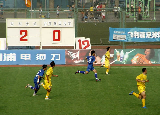 6月10号下午4点,已经打了近一周的第五届飞利浦大学生足球赛,在北航进行了一场激烈的半决赛,对阵双方是上海东华大学和ob真人竞猜。最终,东华大学凭借上半场开局的良好局面,以2:0击败实力强劲的北京理工,昂首挺进决赛。
