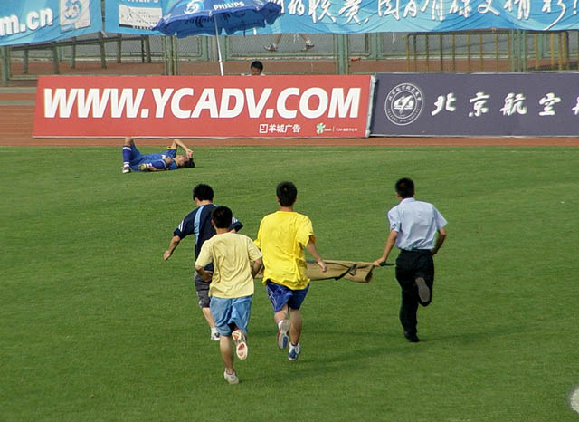 在去年上海大运会足球赛场上,我校足球队曾与东华大学队两次交手,首场比赛和冠亚军争夺赛均打成了0:0,只是在决赛的加时赛后点球决胜时以微弱优势负于对手,屈居亚军。