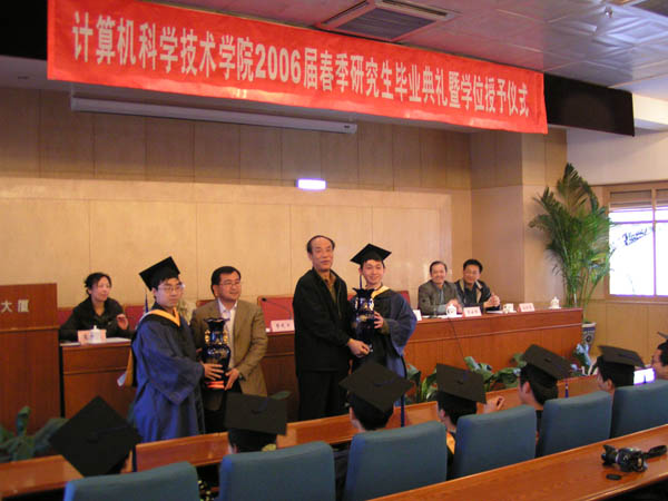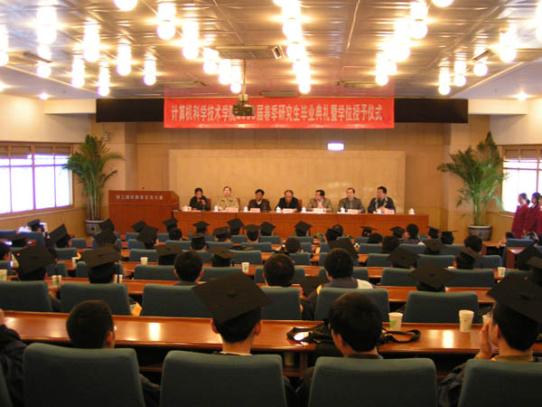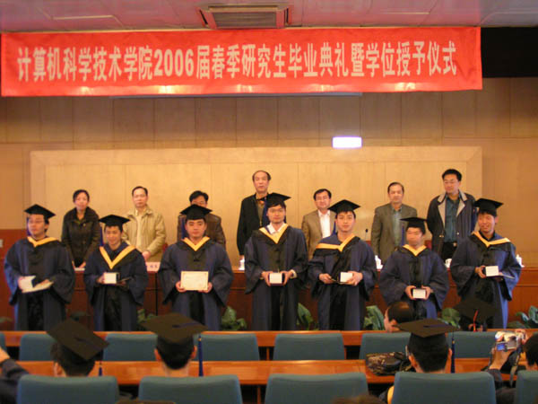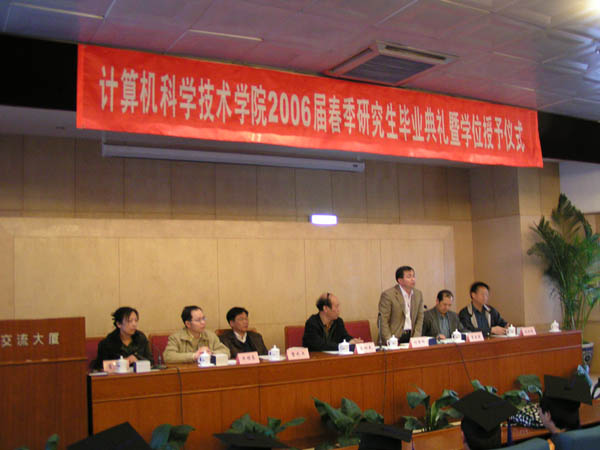 计算机科学技术学院2006届春季研究生毕业典礼暨学位授予仪式于2006年3月27日在国际交流中心会议室隆重举行。分党委书记王树武、院长付梦印、常务副院长贾云得、副书记副院长肖文英、副院长牛振东、副院长陈朔鹰、学生辅导员和全院133名春季毕业研究生参加了本次典礼。