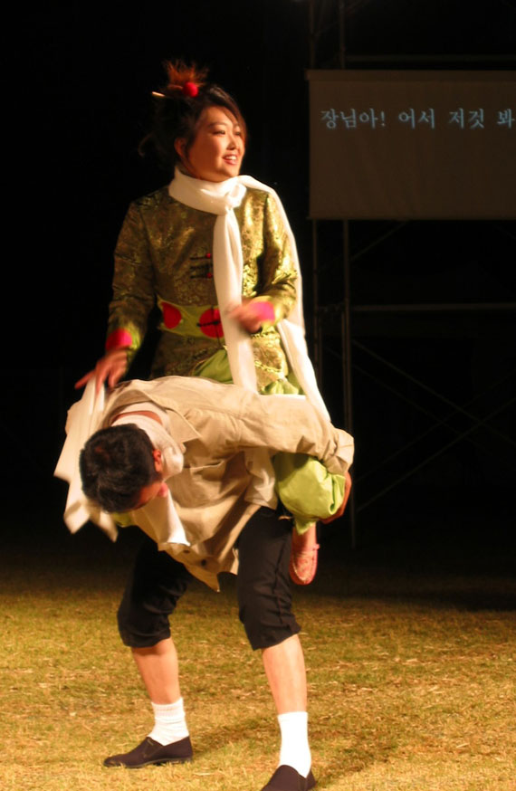 我校学生社团——太阳剧社应“ASIAN MADANG”的邀请赴韩国参加光州艺术节的演出。光州是韩国农业和文化艺术的中心,光州艺术节是一次精心筹备的民众戏剧的盛会。来自东亚各个国家和地区的戏剧舞蹈作品汇聚到了一处,共有来自中国大陆、香港和台湾,韩国,日本的大约十几个艺术团体参加了本次艺术节;其中北京市包括我校太阳剧社在内的两个剧社在市艺术家协会的推荐下参加了艺术节。这些艺术团体在一个星期的时间里先后演出,相互交流。