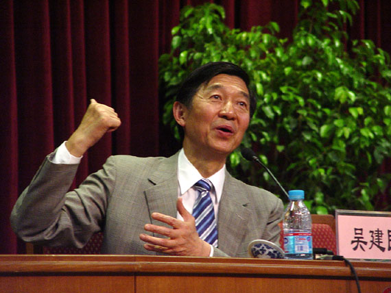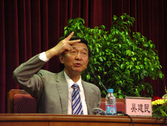 吴建民,著名外交家、国际事务专家。22岁起就步入外交领域,曾给毛主席、周总理、陈毅等老一辈领导人做过翻译;中华人民共和国恢复联合国席位后,他是第一批进驻联合国的工作人员之一;他曾任驻荷兰、法国大使;驻法期间,法国总统希拉克亲自颁授“法国荣誉勋位团大将军勋章”,以此表彰其“为促进法、中友好关系和法国人了解中国方面所做出的贡献”。