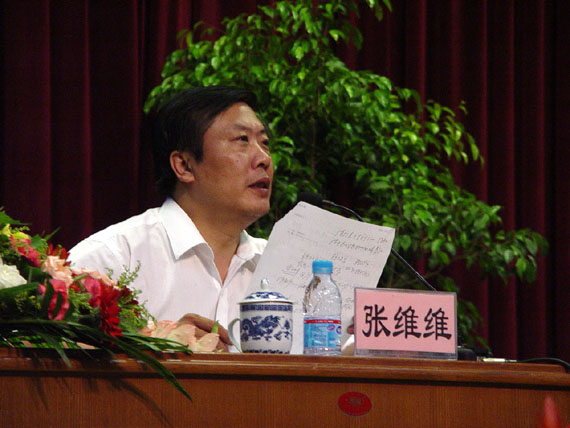 报告会于下午2:30分开始。校党委副书记,纪委书记张维维主持报告会。他说,学校当前正在开展保持共产党员先进性教育,为帮助广大师生了解国际时事,学校有幸邀请到吴建民先生来我校作专题报告。张书记代表在座师生对吴建民先生的到来表示热烈的欢迎,并向在座师生简要介绍了吴先生丰富的外交经历。