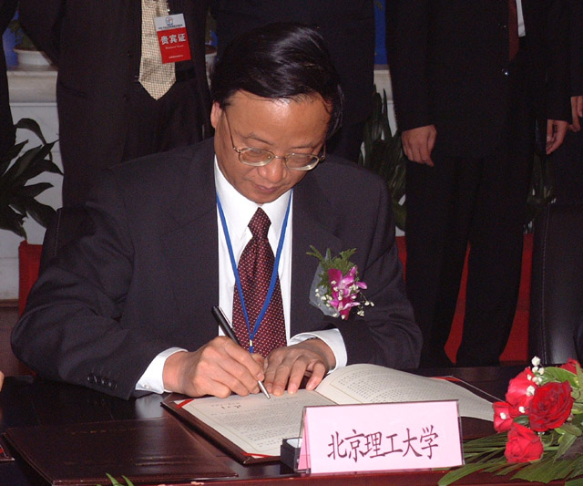 2005年9月21日我校与辽宁省人民政府在辽宁人民会堂签署了“十一五”全面合作协议。匡镜明校长、赵长禄副校长及校长办公室、科技处、产业总公司等部门相关人员赴沈阳参加了签约仪式,匡镜明校长与滕卫平副省长分别在协议书上签字。