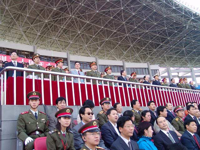 我校ob真人处处长、军训旅总指挥刘明奇应邀在观礼台就坐。