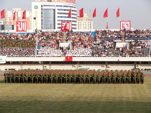 我校参加2005年暑期军训的480名同学负责此次庆祝大会的刺杀表演。