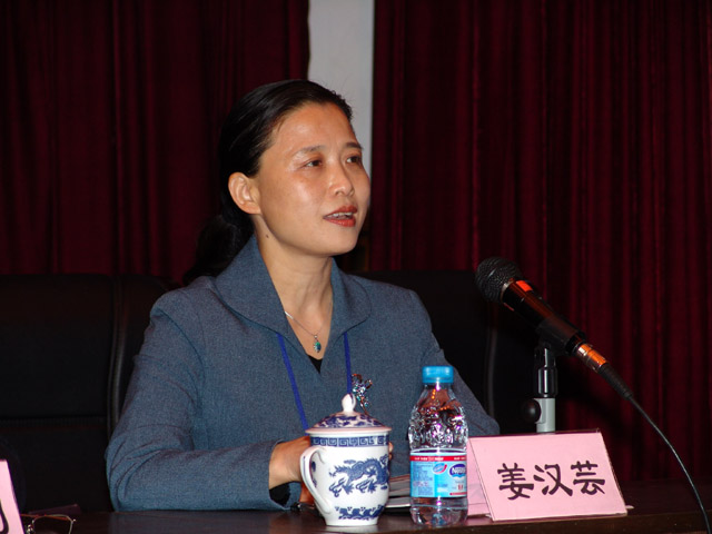 中国高教学会后勤分会办公室主任姜汉芸发言。