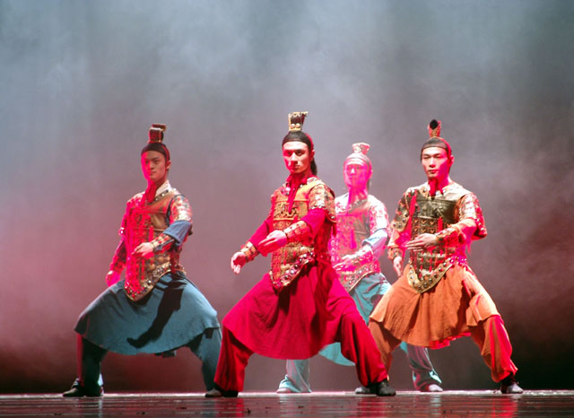 古典男子四人舞《秦王点兵》的创作来自于世界十大奇迹之一的中国西安兵马俑。