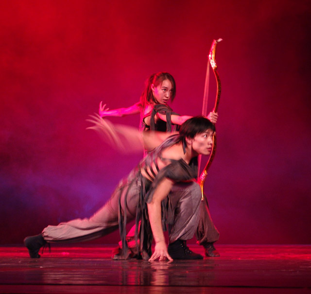 该舞蹈采用了中国古典舞的语汇和创作手法,借古朴的“秦俑”形象,以民间乐曲“绛州大鼓”铿锵有力的节奏,独特的动作造型,表现了中华武士驰骋疆场、勇往直前的英雄气概。