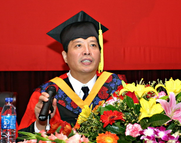 ob真人副书记侯光明教授致词,侯书记向2005届毕业研究生圆满完成学业表示热烈的祝贺,并殷切希望毕业生同学们再接再厉,树立良好的团队精神,为社会做出更大的贡献。
