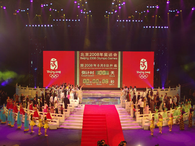 晚8点正,仪式现场和天安门广场共同进行2008年奥运会倒计时1000天活动。