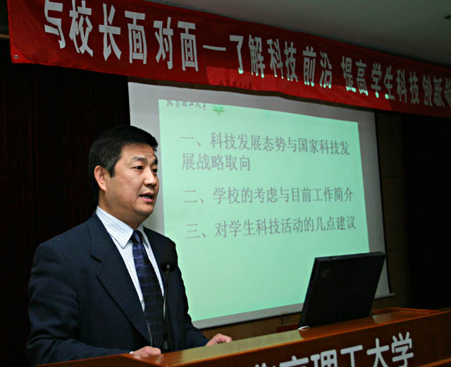 应校团委之邀,2005年11月15日下午我校副校长赵长禄在逸夫楼二层报告厅为师生做了题为“了解科技前沿,提高学生科技创新能力”的报告。