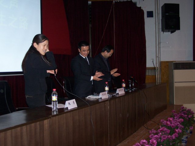 接下来,另一位嘉宾蒋部长又作了关于企业人才培养及大学生职业规划的讲座,这些都是大学生们所关心的话题,同学们听得格外认真,蒋部长也是耐心而细致地为大家讲解。