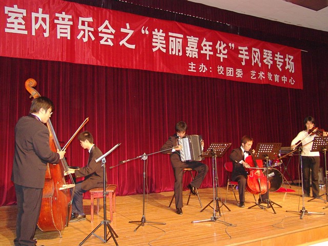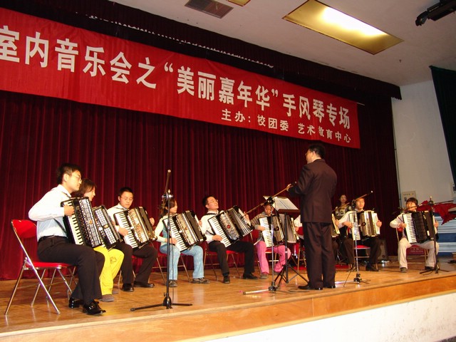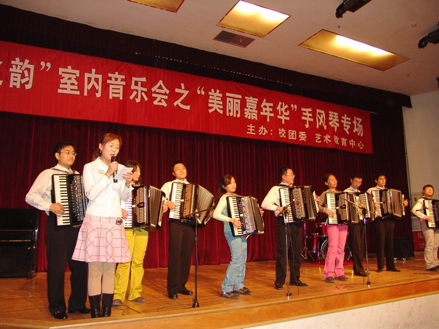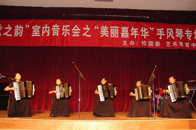 11月23日晚,2005年“秋之韵”系列音乐会手风琴专场演出在中心教学楼一层报告厅举行。音乐会在优美的手风琴合奏《美丽嘉年华》的旋律中拉开了帷幕。